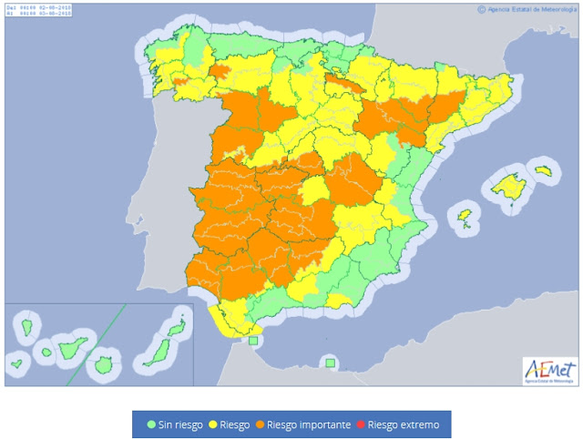L’Agència Estatal de Meteorologia en el seu avís especial de fenòmens adversos emès ahir, dia 31/07/2018, adverteix que a partir d’avui 1 d’agost de 2018 i com a mínim fins al dia 6 d’agost de 2018, sofrirem una onada de calor causada per l’entrada d’una massa d’aire calent procedent d’Àfrica.