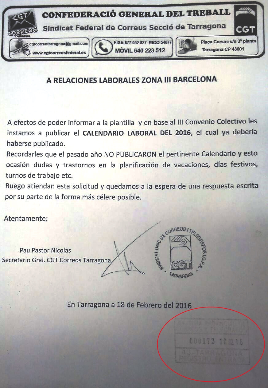 publicar el calendari laboral del 2016,( doc. nº registre 173 18/02/2016) la qual cosa ja hauria d’haver-se