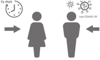 estado en el mismo lugar que un caso, a una distancia menor de 2 metros y