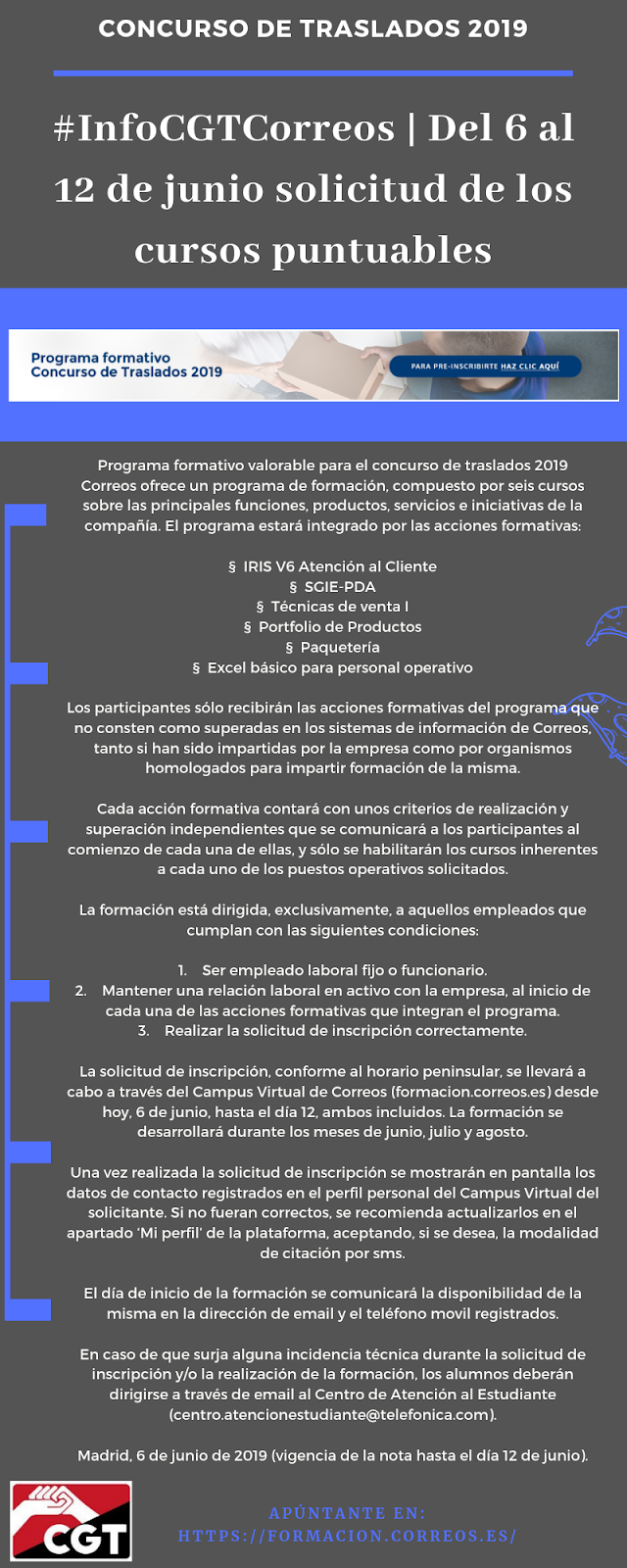 CURSOS PUNTUABLES PER AL CONCURS DE TRASLLATS by CGT CORREUS TARRAGONA | juny 7, 2019 | blog antiguo | 0 comments Enviar un Comentari Cancel·la les respostesL'adreça electrònica no es publicarà. Els camps necessaris estan marcats amb *Comentari * Nom * Correu electrònic * Lloc web Desa el meu nom, correu electrònic i lloc web en aquest navegador per a la pròxima vegada que comenti.