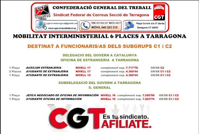 Els funcionaris de Cossos o Escales de Correus de Tarragona que es trobin en